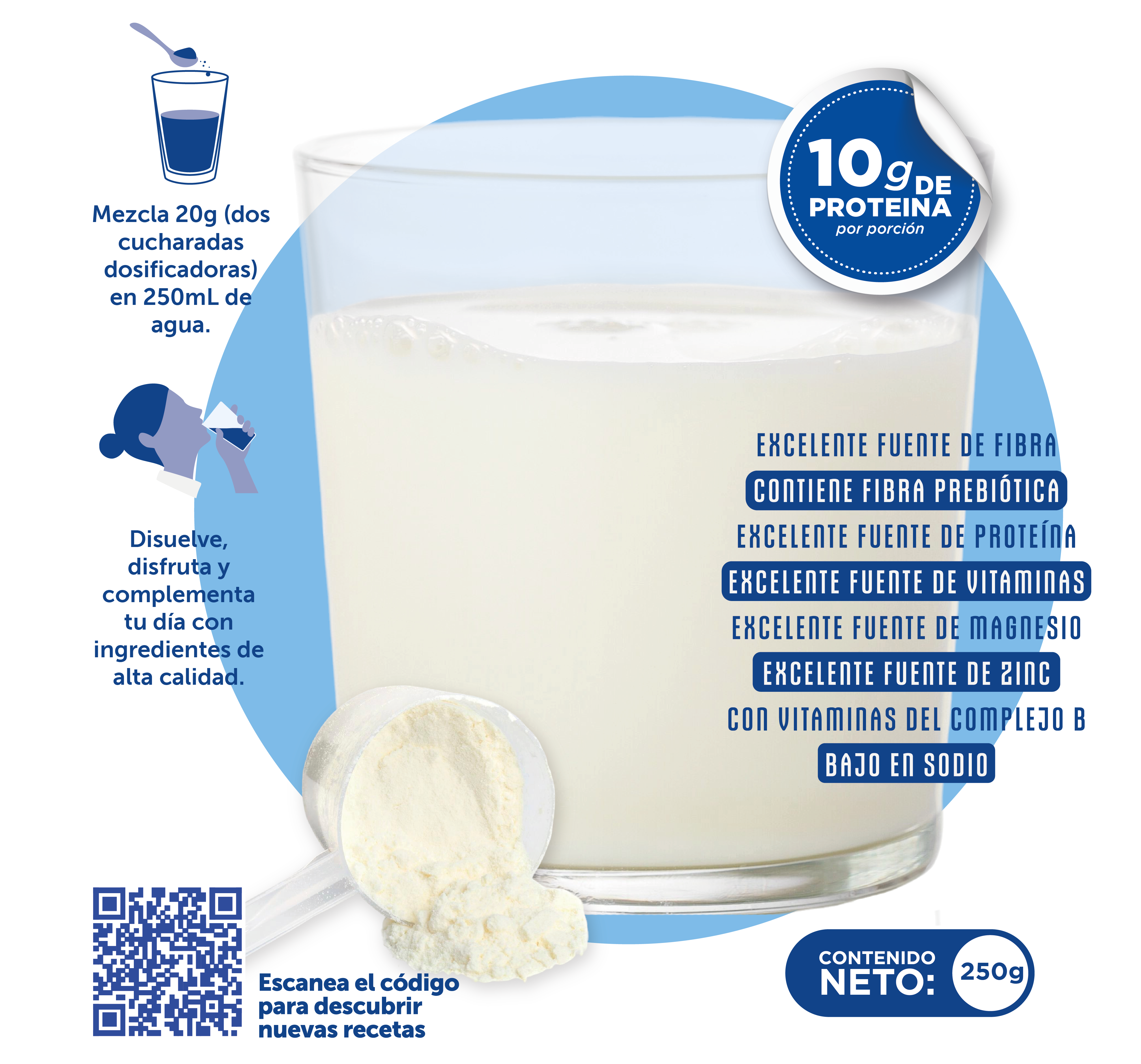INGREDIENTES: Limonada de coco en polvo (sólidos de crema de coco, zumo de limón, ácido ascórbico, almidón modificado (estabilizante), goma arábiga (estabilizante), sabor natural a coco, dióxido de silicio (anticompactante), lecitina de soya (emulsificante), ácido cítrico (acidulante), monoestearato de glicerilo y monooleato de glicerilo (emulsificantes), sabor natural y artificial a limón, hidróxido de calcio (regulador de acidez), mezcla de tocoferoles y ácido ascórbico (antioxidantes), citrato de Magnesio, fibra prebiótica (inulina), acidulante (ácido cítrico), edulcorante artificial (sucralosa)